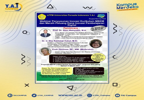 Y.A.I Friends! Fakultas Ekonomi dan Bisnis Universitas Persada Indonesia Y.A.I akan menyelenggarakan kegiatan Webinar Nasional : Manajemen Pemberantasan Korupsi dan Implikasinya Bagi Masa Depan Indonesia dari Prespektif Manajemen Sumber Daya Manusia, yang akan dilaksanakan pada :...